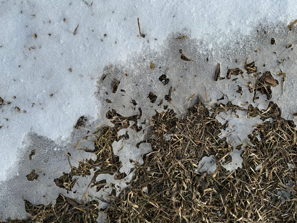 A slow disappearance of snow is happening right before our eyes this week, despite the sky being mostly cloudy. Each morning, we find ourselves surprised by the appearance of more exposed ground.