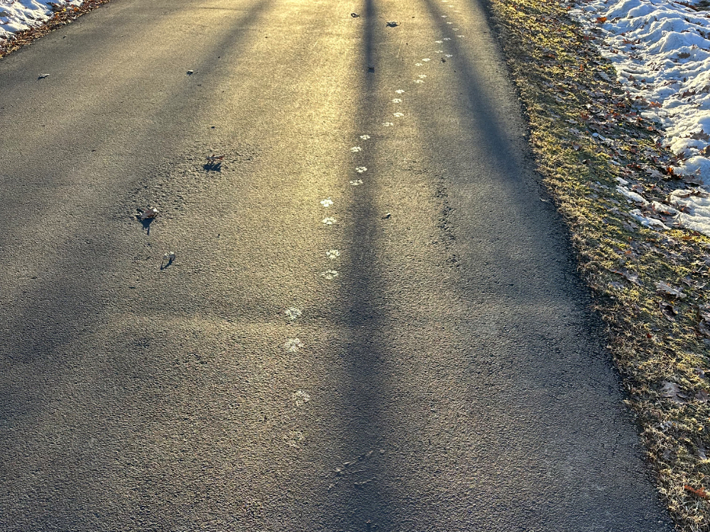 When I walked Asher past that spot with the telltale striped hide peeking through the snow earlier in the day, he was very good about obeying my “LEAVE IT!” command.