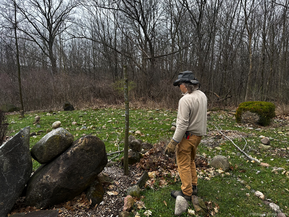 At least the smaller rocks defining the pathway can be lifted out of the mud and reset. Those boulders are pretty much doomed to sink and tilt with little hope of being reoriented. I used the loader bucket on the big tractor to stand them up when we started creating the labyrinth and didn’t have the rings of rocks in place yet.