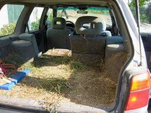It wasn’t enough to interrupt our plan, but this time, Ian was the only one cutting. I raked it up and stuffed it into the back of his Forester. It is part of the amazing total utilization of that vehicle. He drives it over sharp inclines and through thick growth that scuffs at the side panels. The inside contains evidence of sawdust and straggling remains of the cut underbrush. I told him he should look into a sponsorship from Subaru. It certainly is a testament to the intentions the vehicle was designed to accomplish, and not the window dressing that so many utility vehicles become. He brushes it out, folds the seats back upright, hoses off the outside, and it looks like new, ready for an errand to town.