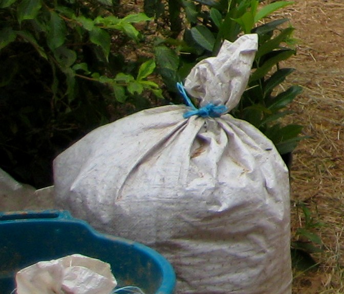 When Ian and I finally returned to the farm after our visit with Carlos, we put our energies into chores, beginning with distribution of some of the accumulated manure. When Ian cleans out the stables, he puts the manure and wet sawdust into large plastic bags and ties them closed to