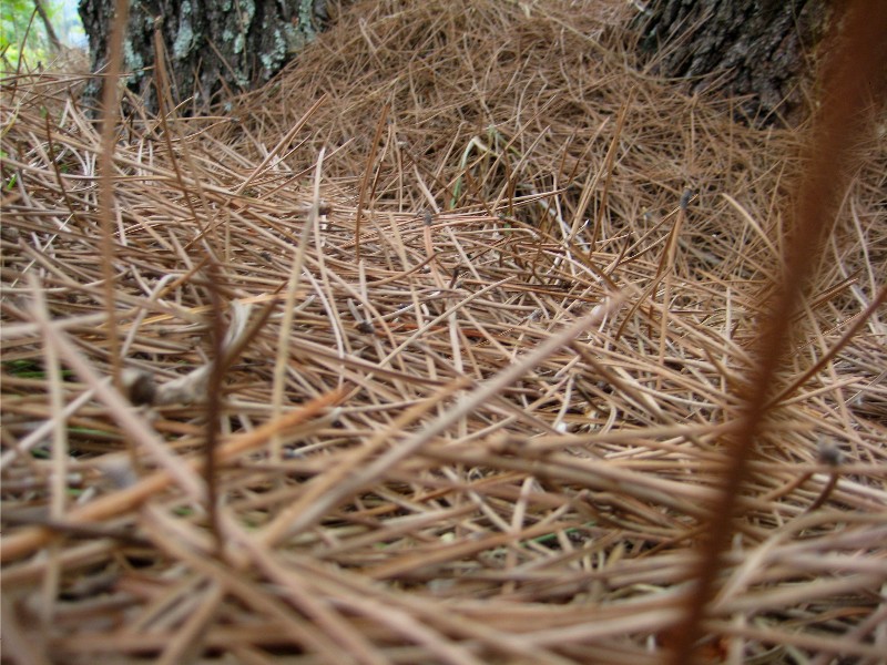 Bags emptied, Ian drove us back down to pick up the tools for cutting undergrowth. I have one day’s experience under my belt at this point and now I am ready to improve my technique. My primary objective was mulching the ferns and other volunteer growth in an area of pine trees, while Ian would cut growth nearby that gets fed to the horses. This was the second time I had ever tried to operate a gas-powered brush cutter. The first time was the day before. I was intent on improving my skills. My goal was two-fold: I wanted to knock down a large enough area to appear productive, yet also do an adequate job of mulching that which I’ve felled.