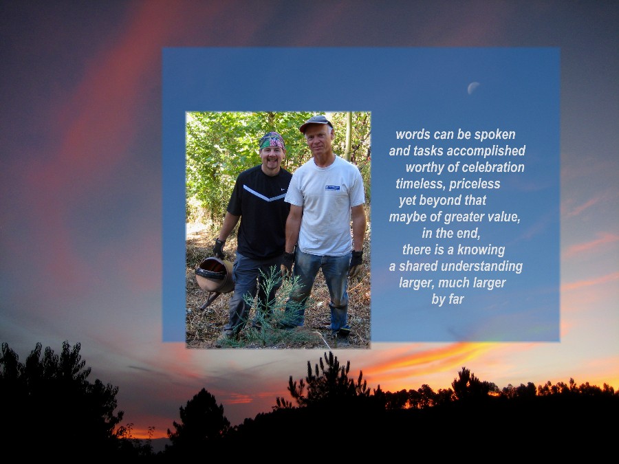 It is day 4 of our visit to Ian and Victoria’s farm in Portugal (Tuesday, September 21) and we are growing comfortable with the routine. Still, it all seems to move faster than I can absorb. I am in a mode of marveling over one aspect of this place and experience, while new revelations of place and experiences continue to appear. Activities follow, one after another, and it is easy to find myself a bit unprepared for a task. More than once I have found myself in the middle of a project when I would suddenly realize I had forgotten to tie up the laces of my boots as I had decided I should do the last time I was negotiating the steep incline or thick bramble.