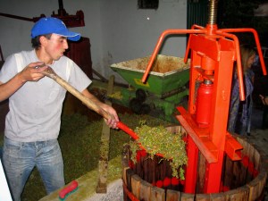 Meanwhile, Ian and I are doing everything we can to keep things progressing as Luis applies his knowledge. Unfortunately, there is one mistake that requires going backwards in the process and consumes a fair amount of time. We struggle to assist Luis in the difficult task of removing the squished grapes from the press to re-orient the walls of the device. We had not fully centered the outer pieces before he started filling it. Suddenly I realize the guests are coming in to say good-bye, and I’ve hardly said hello to them.