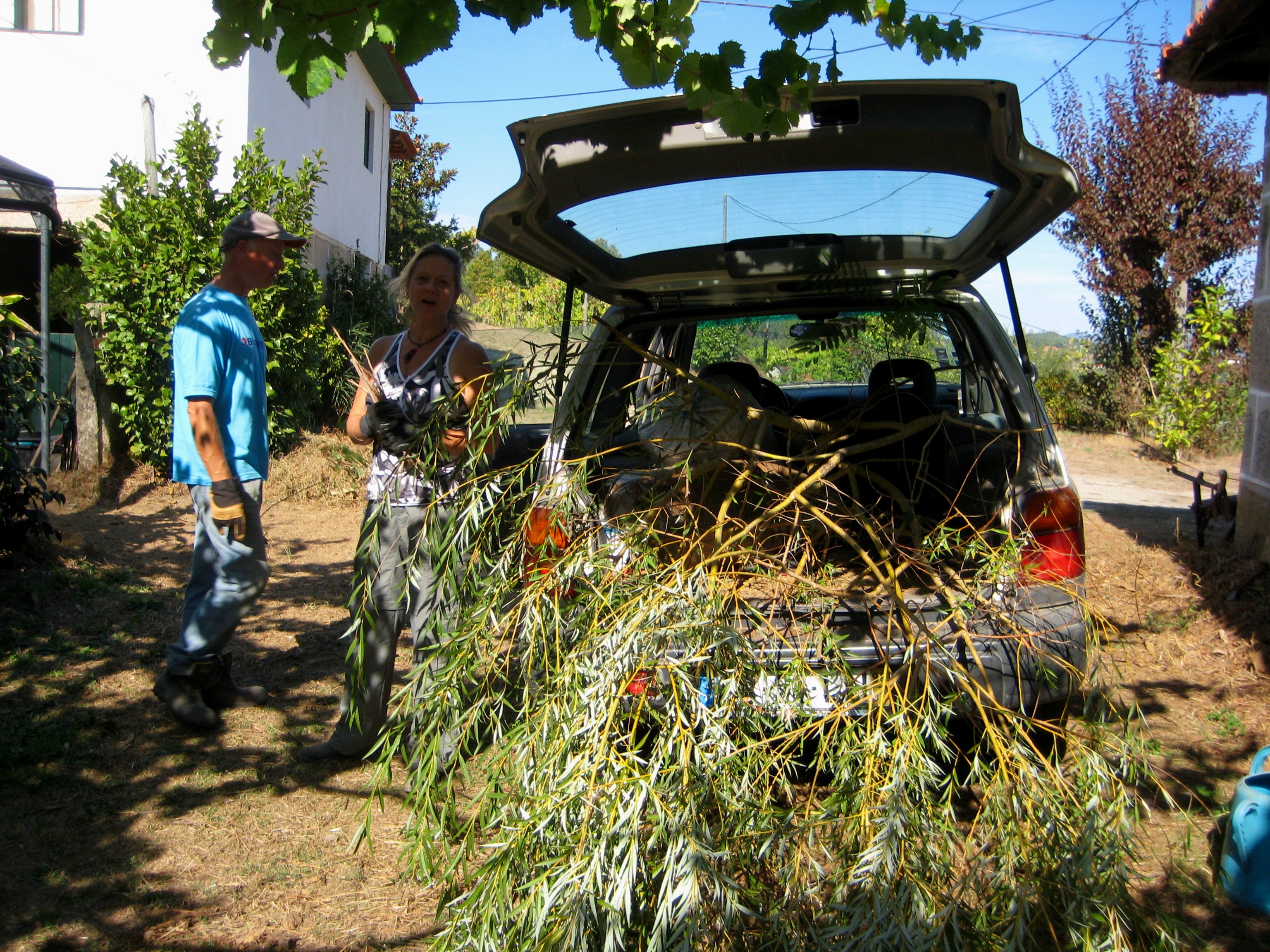 Ian and I had decided to take some trees down to the spring and get them planted, while Cyndie was creating lunch. We selected a batch of camellias for a hedge and a Rowan, or Mountain Ash, to get started. The planting was very inspiring and both Ian and I wanted to do more. I saw a spot that deserved the weeping willow tree that was growing too big on the edge of his shade house. It was competing for space just outside Frida’s and Doll’s stables. It made sense to me to get the tree out of the way there and now we had a wonderful new destination for it.