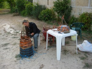 When we returned, we found Cyndie in the driveway with a table set up and quite an impressive project of basket-making in progress. I was very, very impressed with her ingenuity. I have witnessed her thrive here and it is thrilling to see her creative energy and interaction with horses in full bloom.