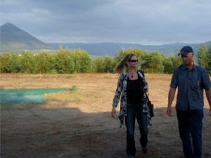 Upon returning from the spring, we decide to pick up where Cyndie and Ian left off the day before with riding and exercising horses. We are interested in seeing if giving them the same routine two days in a row will produce recognizable improvements. Cyndie has brief success riding Doll without Ian leading the way, until Doll catches sight of Ian and me waiting and watching. After that, Doll won’t move, despite Cyndie’s attempts to encourage forward progress. When Ian steps up to lead the way, Doll responds. He even does some running to get her to pick up the pace. With Ian in the lead, they walk Doll out of the dressage area, up the road, past the house and into the pine trees.