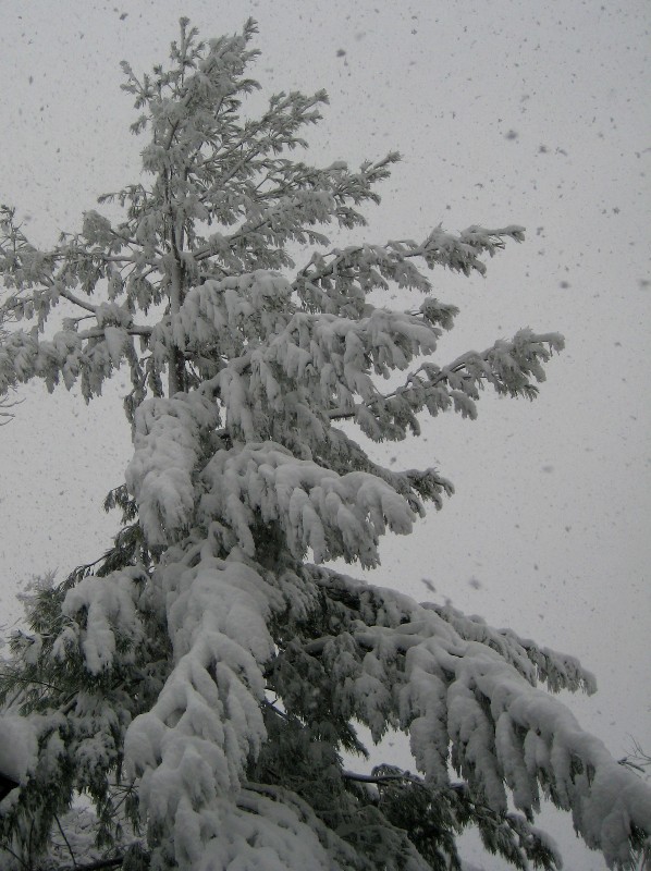 Winter storm season is upon us. If we weren’t ready to deal with snow, we have run out of time to prepare. I’m mostly ready. To be honest, this year my heart has been someplace else. I dreamed of being among horses again last night. It’s not a surprise, since I have continued to post my writings about our adventure, but I’m still thinking of Portugal. This morning is a pretty bold jolt back to the place where we live. Unfortunately, even though this is one of the most beautiful things I get to witness, the snow is giving my trees a follow-up wallop to the recent hurricane-force wind storm that knocked down our huge aspen. We have already lost one limb from one of our biggest long-needle pines, due to the weight of the early season wet snow.