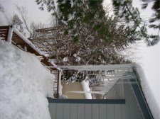 It’s been pretty fascinating around the old home-front lately. Yesterday afternoon, I found myself on the roof again. The third time in the last several days. As much as I love the snow, and usually enjoy shoveling, I will admit at this point to being very interested in taking a long break from lifting any more shovels full of snow. Over the Christmas weekend, I successfully finished clearing the snow from the south-facing half of our house. I figured the front half of the roof could wait until I next have the time to deal with it. A few issues have conspired to push the urgency up a bit. The weather is going to be well-above freezing, while the sun is up, for a few days here. They are even predicting a high likelihood of rain by Thursday this week. Then, when I arrived home in the afternoon, Cyndie pointed out that the symptom that had alerted me to the problem in the first place on the back side of the house, was now happening on the front.
