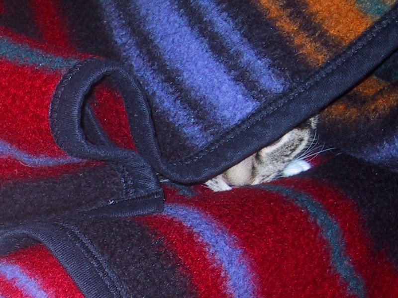 This is another image that showed up on the screen saver slide show last week. I have been searching for days to figure out where this file was located on the hard drive, so that I could post it here. It is filled with wonderful memories of the way Kitty snuggled beneath blankets. It’s a perfect portrait of her, yet doesn’t even show her face!