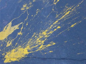 Here are a few recent image captures that the onset of our spring season has offered up to me… • A flowering plant, which I know absolutely nothing about, that resides in our kitchen bay window. • Some seed pods that have been dropped by an unidentified tree along the road on a favorite route for my therapeutic daily half-hour walks. • A paint splatter from a can that fell off a moving vehicle — a paint that would normally only be seen in the form of precise dashed or double lines down the center of the roadway (I am entertained by the contrast this splatter presents).