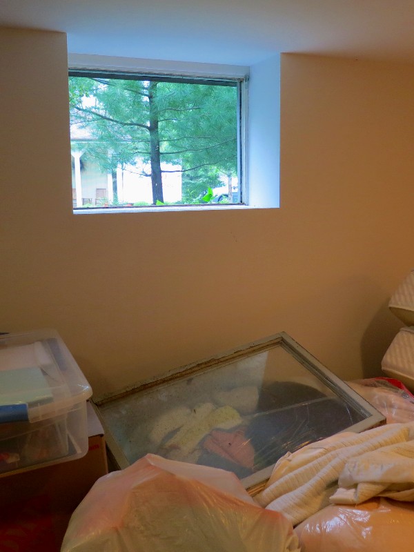 It took me a few seconds to realize that there was no window in the opening. The storm had blown the window in. It was laying on the piles of stuff below.