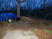 By the end of the day, both Cyndie and I had taken turns driving our new tractor, and we even got some real work done. I was moving firewood and discovered that there was a concrete slab under a mound of dirt and grass. My first inclination was to get a shovel. Then I realized I was standing next to the biggest shovel I have ever owned.