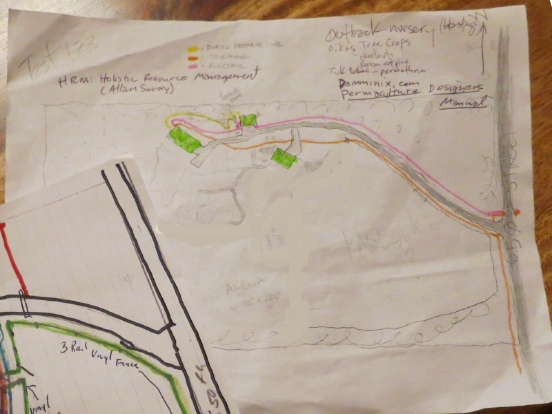 I took a picture of a couple of our working diagrams, and then I tried to doctor the one on the right to indicate some of the old fence we are removing.