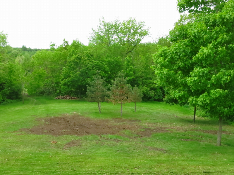 I found Cyndie working on the back hill when I pulled up to the house. She was working on the dirt scar left by the geothermal boring project. I changed clothes and headed out to help. It struck me that this was just one of a variety of things we have in mind to work on. Last weekend, it was the labyrinth that was on her mind. We didn’t make great progress on that, and the weather was lousy, so we switched to the landscape pond. Now, instead of returning to the labyrinth, we are on the back hill. We just chip away on whatever wins our attention at any given moment.