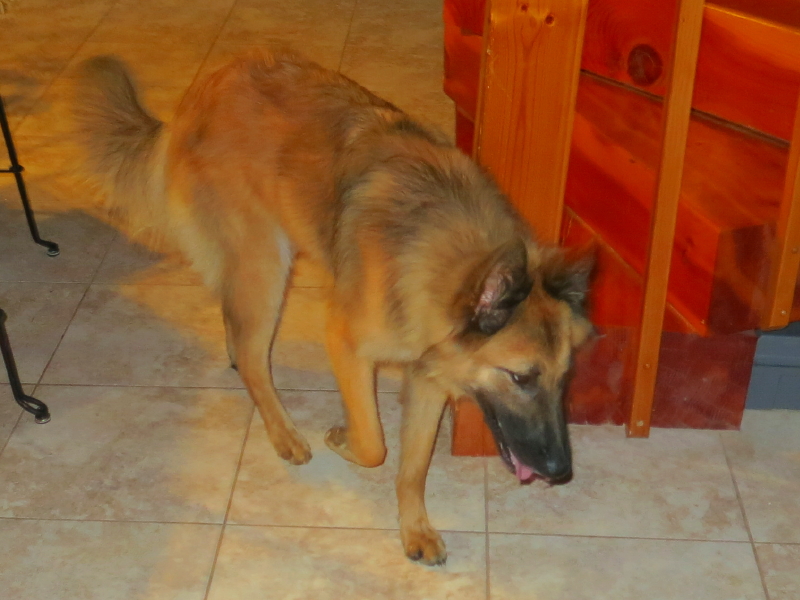 One second later, Delilah was at the back door, on the deck, peering in at us. Cyndie let her back in.