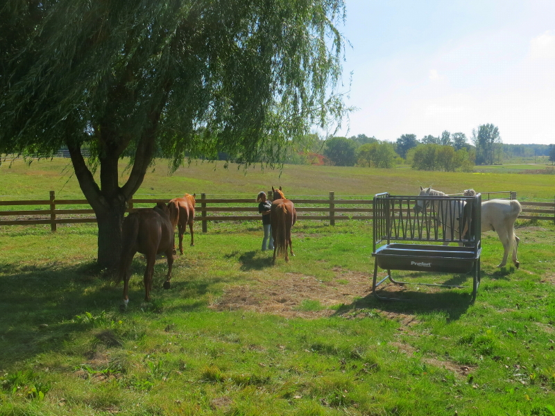 Today, we intend to put them out in the big field for the first time. Since it has been so dry the second half of the summer, we didn’t get enough growth to justify a second cutting, so we will graze the horses out there to let them eat the grass that did grow. It will also give them a chance to be out in open space, and increase their familiarity with their new location.