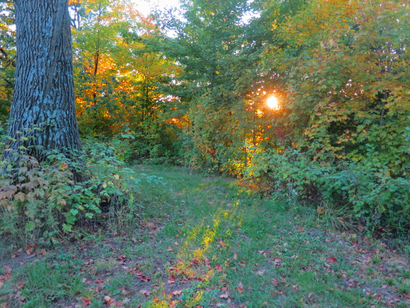 Over the weekend, our trees came to life with the colors of fall. Each morning we would find that it looked like someone had been up all night painting leaves. I was walking Delilah in the evening when I spotted the setting sun through the trees. It made for a nice picture.