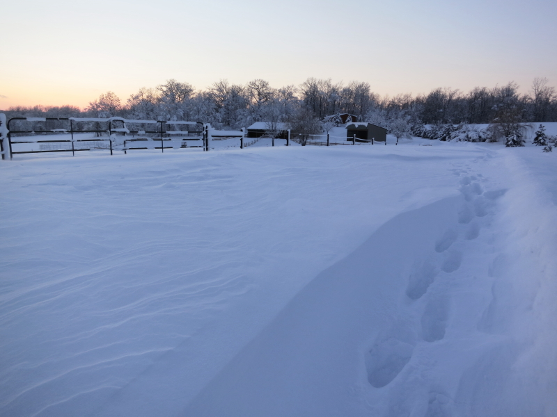 It was Thursday, and Cyndie and I had both stayed home from work in the face of the posted winter storm warning. We had cleaned up the stalls in the barn, and moved the horses inside out of the rain that was falling in prelude to the snow.