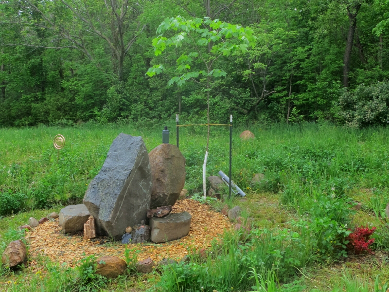 The new transplant is in the ground at the center of our labyrinth, leaves already showing hints of the trauma. Today we are starting over with a second take, watching for signs indicating it is satisfied with its new location and the bright sunshine. No less than we were with the first tree, we are filled with hope that this one will survive.