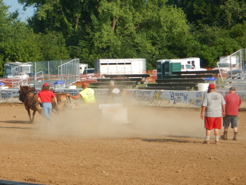 The pony pull was something I had never before witnessed. I don’t know if these folks train their horses just for this type of event, or if these are work horses that get a few weekends of competition for variety. The horses seem to know the drill, being all too eager to launch with all their might, whether or not the driver is ready and the handlers have successfully dropped the hook to catch the sled. More than once, the driver had to take the team around and circle back for another try. When they launch into pulling, it’s a force to be reckoned with.
