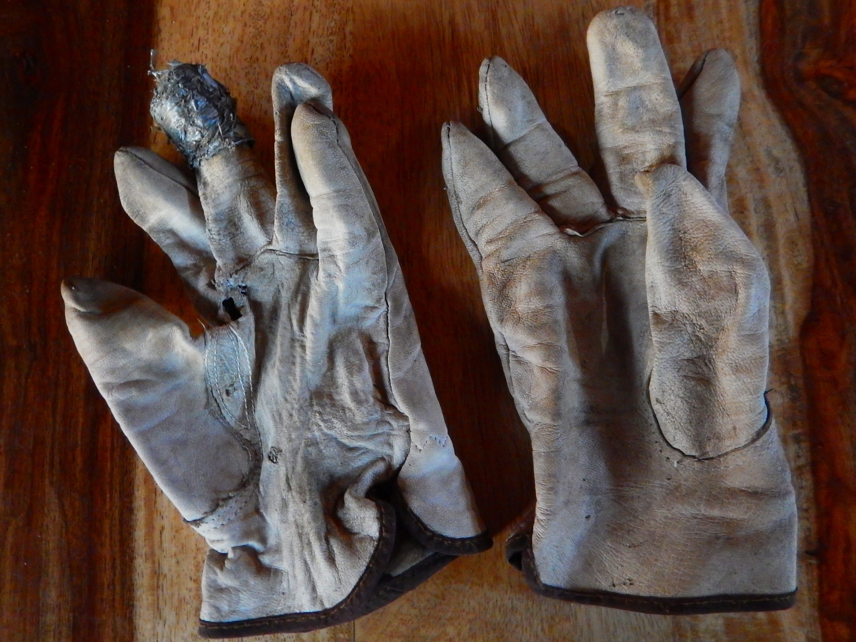 For some reason I have a difficult time parting with old gloves. The finger on these opened up way too soon, so I patched it and got a good few weeks more out of them. Then the palm opened up and I decided it was time to retire them.