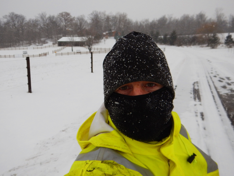 While walking with Delilah in the morning, I captured a selfie that should become my next profile picture. This is my uniform for working outside in dangerous wind-chill temperatures.