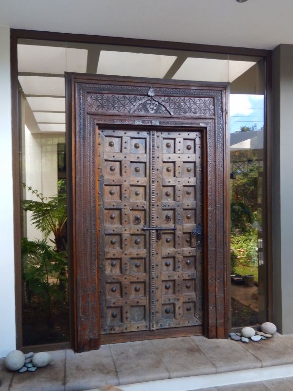 A view of the outside and inside of the front door to the Morales’ gorgeous home in Guatemala City.