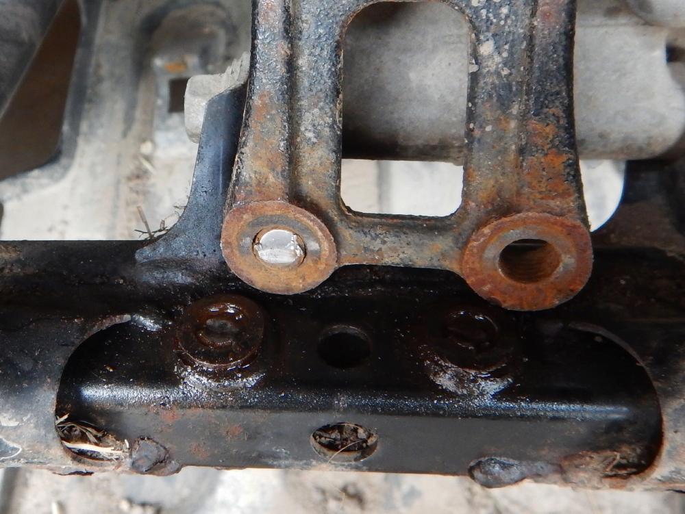Now that project has been completed and I am left with a mechanical challenge of getting the stubs of the two threaded bolts out of the frame. Easy-peesy. Just get one of those “As Seen on TV” EZ-Out bits and spin the darn things right out.