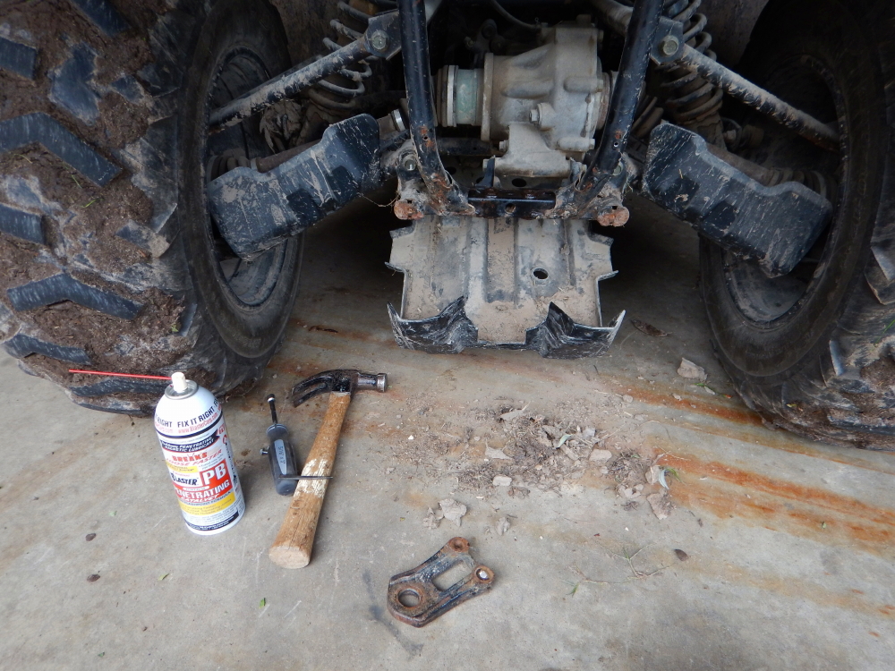 I would like to fix the problem that occurred when I was pulling the ABI grader/rake behind the Grizzly and came upon an immovable buried rock. The two bolts holding the hitch plate to the ATV frame sheared, leaving me to finish that round pen job by hand.