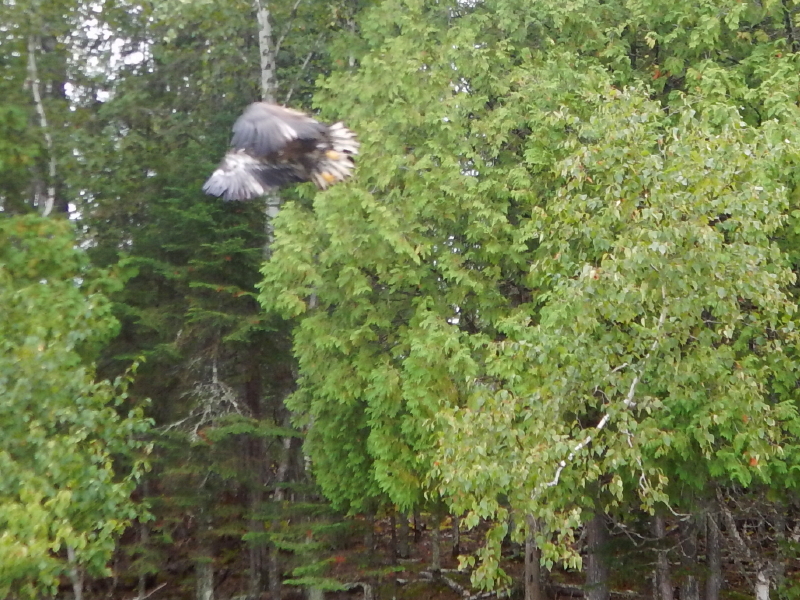 We took a boat tour of the chain of lakes that led us to 40 acres of forest that the Wilkus family owns. On the way, we spotted a young eagle low over the water and watched it claim a precarious perch in a nearby tree. After we got surprisingly close, it took to the air again, moving quicker than my limited pocket camera could do adequate justice in capturing. It made a dramatic impression in its display of size and power.