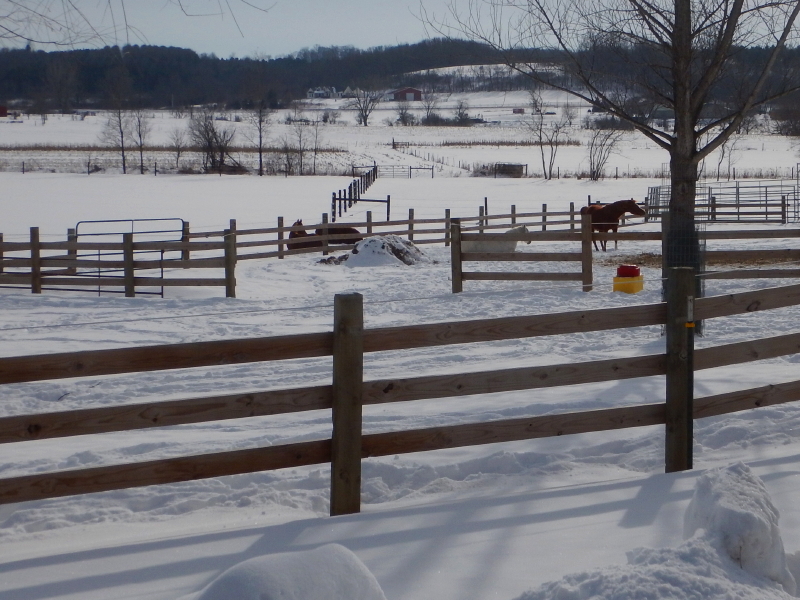 While I was running the ATV, the horses watched me from a distance. Once that ruckus was over, and the only sound being made was the repetitive scrape of my shovel, they no longer showed a need to keep an eye on me. The sun was winning the battle of breaking through the clouds and it seemed wonderfully cozy for a winter day.