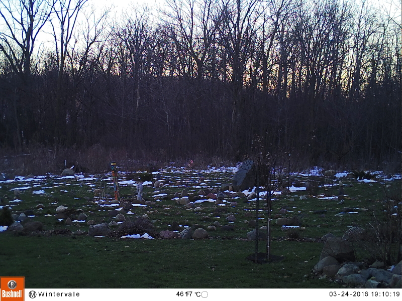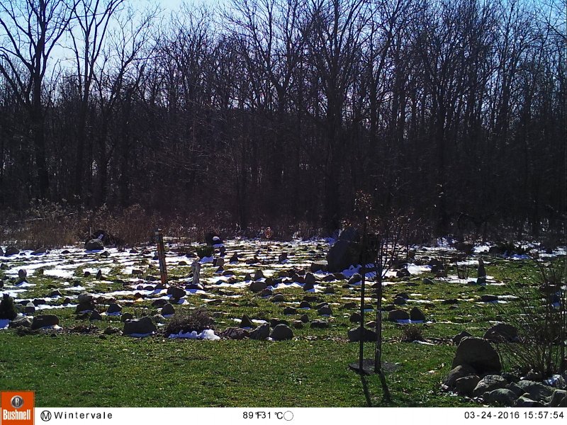 I moved the trail cam over the weekend and am not happy with the results. I wanted to try a more open area so there would be less branch clutter in the foreground of the view.