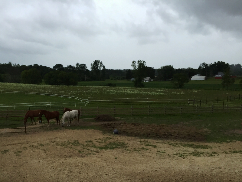My poor little brain is surfing on the crest of one of those waves of constant change with regard to the horse hobby farm gig. We have adjusted our hay plans this year to trying to purchase all of next season’s inventory and not use any of what we can cut and bale off our field. This year’s crop on our front field is growing more weeds than grass.