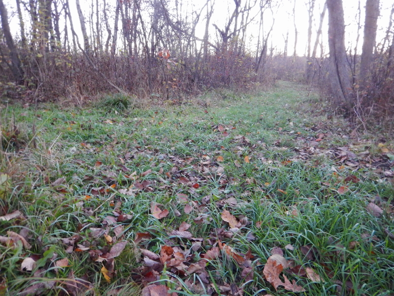 In the woods, the prominent grouping of trees change from oaks and maples to butternut and poplar. The trail transitions from hard soil to mossy to grassy to muddy to sticks and dirt.