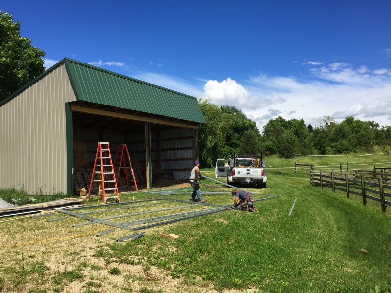 We enjoyed a pleasant surprise yesterday when a contractor knocked on our door to announce he was ready to start work on building doors for our hay shed. After a few years of watching the outside bales baked to a nutrition-less crisp of dried straw, we have settled on solid doors for a long-term solution.