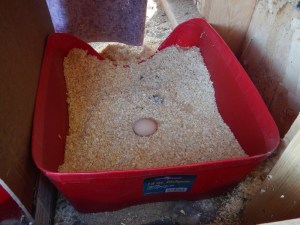 Someone laid an egg. Yesterday afternoon, I found a cute little egg in one of the nest boxes, right where it’s supposed to be. It’s our first. Another milestone to record on the great migration to rural life for us.