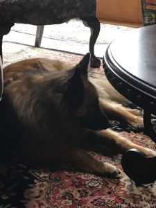 Today, we are hoping for any sign of improvement, because nothing so far seems to be bringing her relief. At this point, the total activity restriction seems like it will cause her more angst than the pain. Poor girl doesn’t understand why she isn’t patrolling the perimeter three times a day anymore.