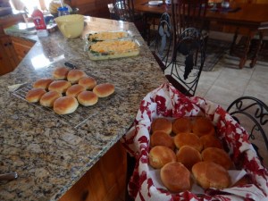 Yesterday, Cyndie unleashed a great weapon against cold and snow. She filled the house with the smells of fresh-baked buns and whipped together a couple of egg bakes for a family brunch today.