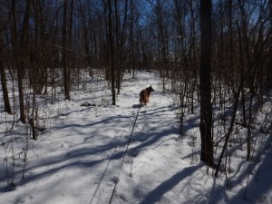 The cougar that growled near Cyndie and Delilah last week is likely long gone after its journey past our home. We did a search in the neighboring woods where the eery sounds came from last week, but did not find any hint of a foot print or disturbed snow where the drama played out.