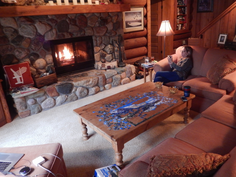 Building a jigsaw puzzle in front of the warm glow from the fireplace while listening to our most memorable music from our dating years just happens to be a very comforting way to deal with that first cold blast of the season after summer ends.