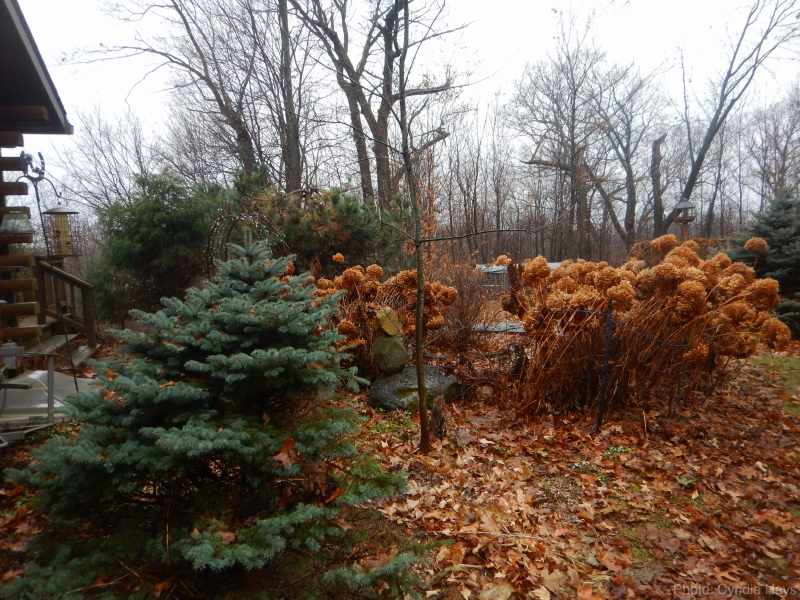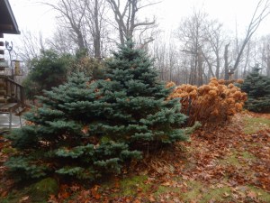 Yesterday, Cyndie asked if we could trim some branches to bring in boughs of pine for decorating around the house. While seeking out possibilities, I spotted a spruce tree that was seriously encroaching on a new oak tree that has established itself nicely, just outside our bedroom window.