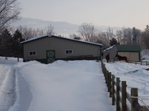 I suppose it was warmer footing than standing in the snow. Cyndie had mucked out the stalls earlier in the afternoon and the chickens seemed to take a liking to the fresh addition on top of the snow.