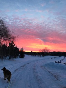 By the time we returned from a loop around the north pasture through the deep snow, Hunter had moved up under the overhang with Dezirea, but Cayenne remained under the tree.