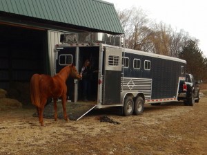Cayenne was understandably cautious, but eventually made it all the way to the front position inside the trailer, remaining calm while Hunter whinnied from the barn. His turn came next.