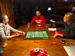 Last night, we mostly ignored the snow and celebrated joyful memories of the months George and Anneliese lived in our basement. The boys pulled off a come-from-behind victory in CrossCrib and Anneliese won the nightcap card game of Bikini, like she always seems to do.