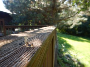 As I talked, I was unscrewing the multitude of clips that our friend, Marco Morales, had meticulously placed for a flexible LED light wire Cyndie wanted along the deck railing for a special party while the Morales family was visiting four years ago. Remember these, Marco?