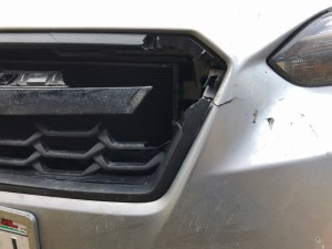Aww HECK! The license plate frame (not my real numbers), the grill, and the plastic of the main front cracked and chipped!