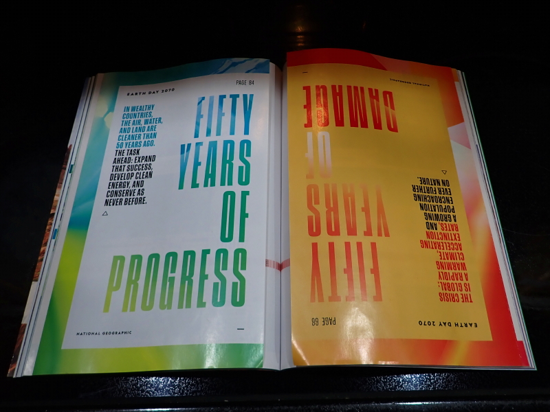 Yesterday, we received the April issue of National Geographic magazine marking the 50th anniversary of Earth Day and it’s flippin’ cool! I mean, literally!