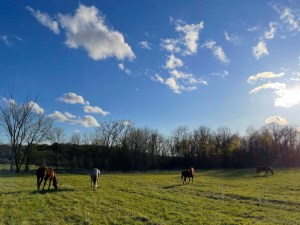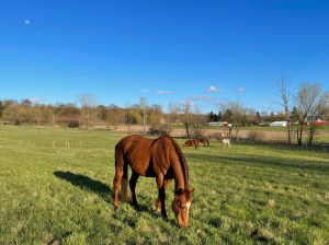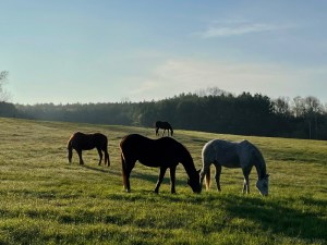 They provide both solace and distraction from our grief over the decimation of the chickens. We are learning how to frame our recent experience losing chickens and trying to soothe the angst of relocated rescue Thoroughbreds.